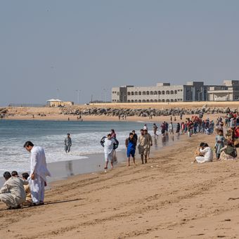 Manora Island is a peninsula near Karachi connected to the mainland by a sandbridge and positioned between the harbor and the sea. The landmass forms a natural protective barrier where a lighthouse and old fortifications stand.