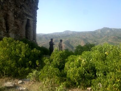 The stone walls of Nandana Fort rise 1500 feet above Choa Syedan Shah, with remains of ancient structures spread across 45 kanals.