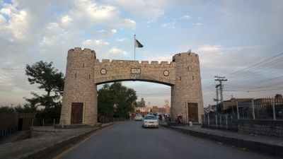 Located 17 kilometers west of Peshawar, the gate serves as the primary entry point to the historic Khyber Pass trading route between Pakistan and Afghanistan.