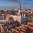 The city center displays a mix of architectural styles, from Gothic churches to Renaissance townhouses, surrounding the central Market Square with its Renaissance Town Hall.