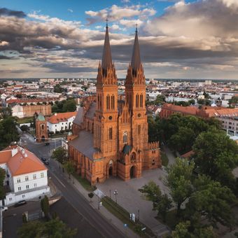Włocławek is a city on the Vistula River in Kuyavian-Pomeranian Voivodeship, Poland, where brick churches stand beside postwar housing blocks. The river plain divides the older center with cobbled streets from newer districts holding factories and apartment buildings.