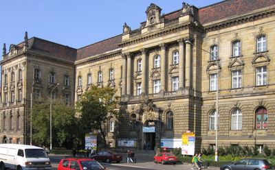 The structure represents the intersection of German and Polish architectural traditions, reflecting the complex history of regional governance in Silesia.