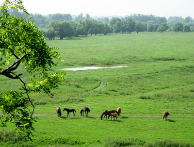 The territory contains a sugar refinery established in 1845, one of the earliest industrial facilities in this part of Poland. This historic facility shows how industrialization reached this rural area in the 19th century.