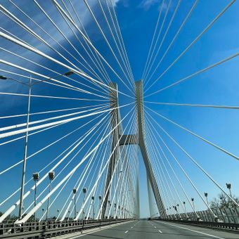 The concrete deck covers 70,000 square meters, making it the largest reinforced concrete surface on any bridge worldwide. The total length of wire inside the suspension cables would be enough to reach from Wrocław all the way to Tokyo.