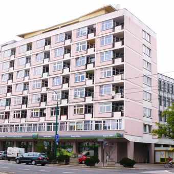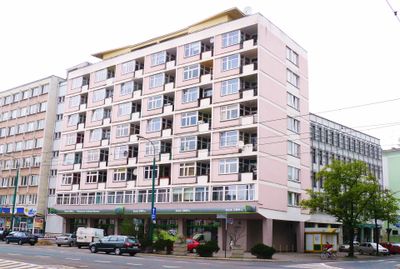 The structure represents the principles of socialist modernism, incorporating functional design elements that characterized the architectural movement of mid-20th century Poland.