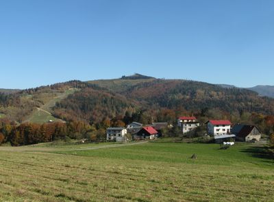 The mountain is accessible via a green hiking trail from Wisła Nowa Osada and features the Nowa Osada Ski Resort below its summit, which includes a chair lift, two T-bar lifts, and nearly four kilometers of ski slopes for winter recreation activities.