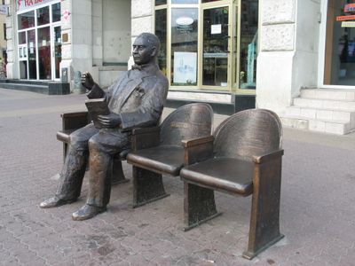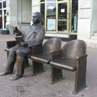 Fotel Jaracza, Bronze memorial bench in Piotrkowska Street, Łódź, Poland.