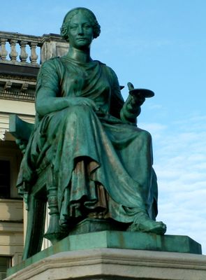 The monument represents the Greek goddess Hygieia, symbolizing the connection between clean water supply and public health in European urban development.
