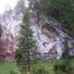 The access path crosses through former agricultural fields of Skalskie, where a Lemko village once stood before passing through a natural rock gate.