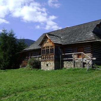 The museum complex contains three wooden residential buildings, a chapel, a blacksmith workshop, and a cellar with a granary displaying regional mountain architecture.