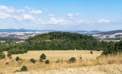 The summit contains remnants of a 19th-century brick observation tower that was constructed to provide panoramic views of the surrounding Sudetes Mountains.
