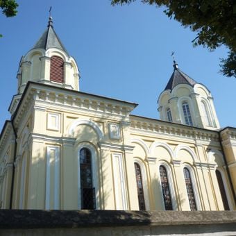The structure incorporates elements of eclectic architecture, demonstrating the fusion of different design approaches in religious buildings of the region.