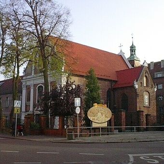Saint Anne Church is a Franciscan monastery and place of worship in Wejherowo featuring baroque design with multiple altars, religious sculptures, and detailed frescoes decorating the interior. The complex includes both the church building and adjoining monastic structures that form an interconnected whole.