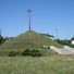 The Kosciuszko Mound rises 15 meters above ground level, featuring a concrete base of 18 meters in diameter with a wooden cross at its peak.