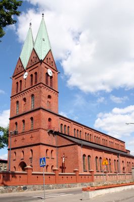 All Saints church in Brusy, Romanesque Revival church in Brusy, Poland.