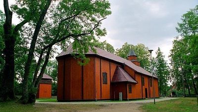 Church of Our Lady of the Scapular in Studzieniczna, Wooden church in Studzieniczna, Poland.