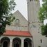 The three-nave church features a western tower, side altars created by Munich sculptor Schreiner, and paintings of Stations of the Cross by professor Kasper Schleibner.