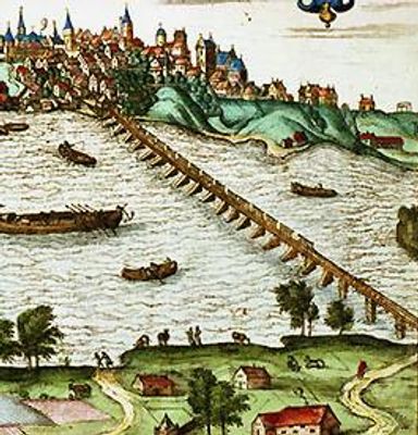 Sigismund Augustus Bridge, Renaissance wooden bridge across Vistula River in Warsaw, Poland