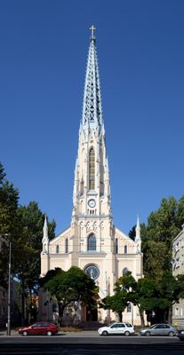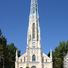 The Gothic-style religious building features a high tower modeled after the Cathedral of Our Lady in Freiburg im Breisgau, Germany.
