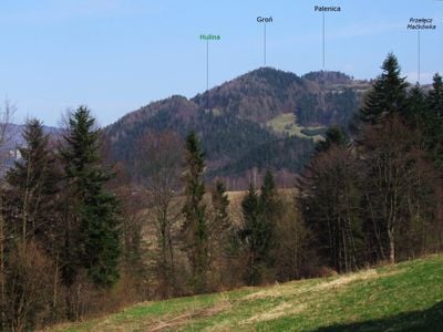 Palenica rises 722 meters above sea level in the Lesser Pieniny range, featuring limestone formations and offering panoramic views across the surrounding mountain landscapes and valleys.
