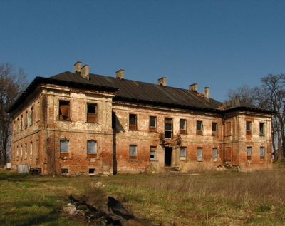 The palace stands within a large park complex and features traditional brick construction with symmetrical architectural elements characteristic of the classicist period.