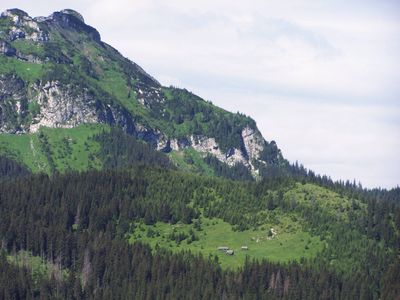 Polana na Stołach is a protected mountain meadow at 1,300 meters elevation on the eastern slope of the Stoły massif in the Western Tatras. The clearing faces the Kościeliska Valley and contains wooden structures that date from its pastoral past.