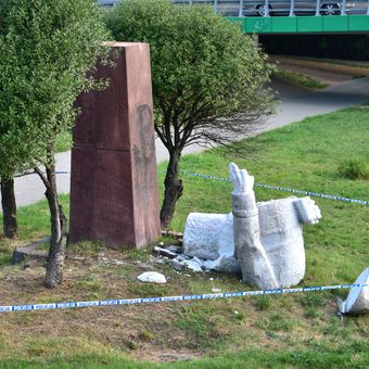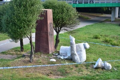 Red paint repeatedly appears on the monument's hands, reflecting public sentiment about General Berling's decisions during the 1944 Warsaw Uprising.