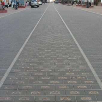 The Monument to the Lodz Residents features four bronze statues representing local industrialists who shaped the development of the textile industry in the region.