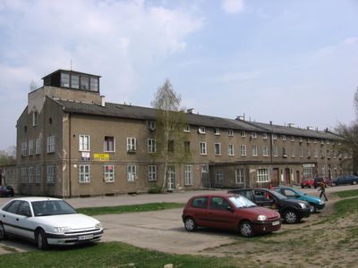 The airport grounds included a passenger terminal constructed in 1936, multiple hangars, and an aviation equipment manufacturing facility spread across western Wrocław.
