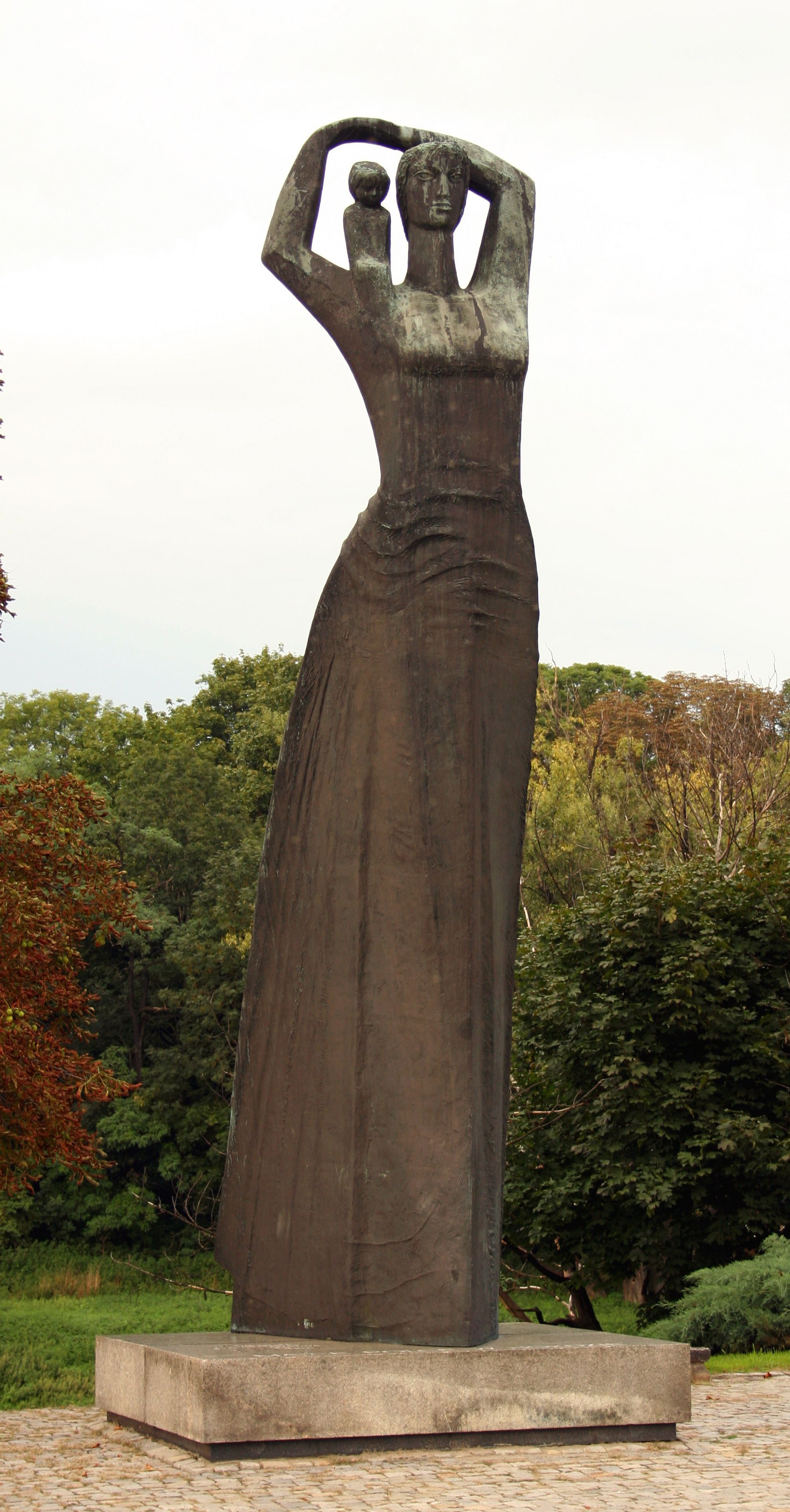 The Matka Polka monument stands 6.7 meters tall and consists of 30 bronze elements weighing a total of 3 tons at Plac Mostowy.