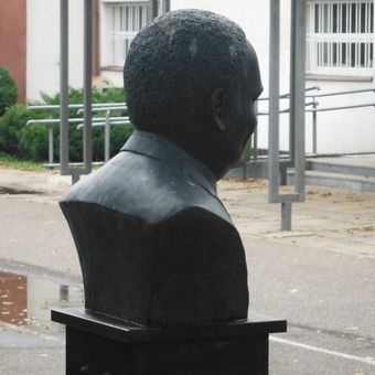 Bust of René Goscinny in Warszawa, pomnik na Saskiej Kępie w Warszawie