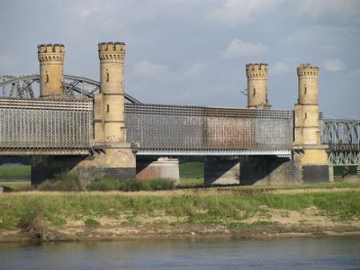 Construction of the bridge began in 1851 under King Frederick William IV of Prussia and completed in 1857, connecting Berlin with Eastern Prussia through the railway line.