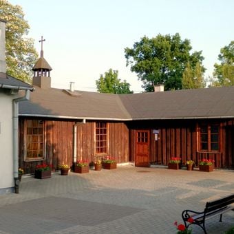 The Old Chapel in Niepokalanów is a wooden structure built in an L-shaped design that served as the first religious building of the monastery. The modest chapel houses memorial sections and continues to function as a gathering place for prayer today.
