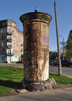 The transformer column represents early 20th-century industrial architecture and remains a testament to Warsaw's electrical infrastructure development.