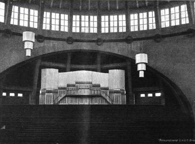 The pipe organ in Centennial Hall is a large wind instrument containing over 7,000 pipes integrated into the hall's architecture. It forms a harmonious visual composition with the interior and contributes to the overall impression of the impressive auditorium.