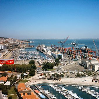 The Tagus River reaches the sea here and forms a large estuary with wetlands and salt marshes that attract rare bird species. This natural landscape sits right next to urban centers, making the contrast between city and nature very visible.
