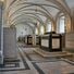 The pantheon contains marble boxes arranged along the sides with spaces for four tombs each, marked by gold-engraved crowns for monarchs.