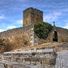 The castle features a stone tower and enclosed walls that form a perimeter around a cemetery within its fortified structure.