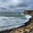 The 1.5-kilometer beach features sandy areas, rock formations, and cliffs along the Atlantic Ocean, surrounded by a protected natural reserve.