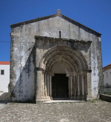 The stone structure contains a single nave with carved capitals and detailed archivolts surrounding the main entrance of the church building.