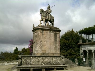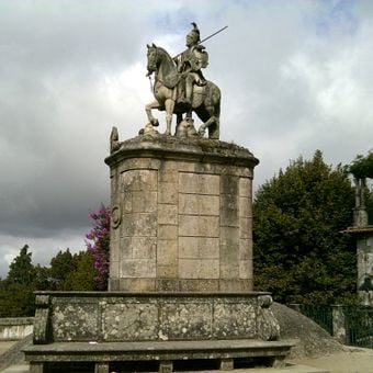 Saint Longinus statue in Bom Jesus, Granite equestrian statue in Bom Jesus do Monte, Portugal.