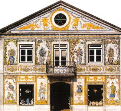 The Viúva Lamego ceramic factory occupies a two-story building decorated with nineteenth-century figurative tiles created by artist Luís Ferreira on its exterior walls.
