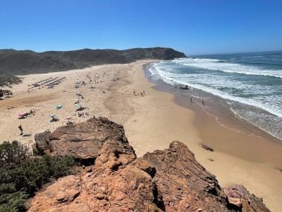 The beach has maintained its natural state within the Costa Vicentina Natural Park, preserving the untouched character of Portugal's western coast.