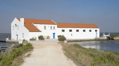 The Mourisca tide mill contains eight grindstones and operates using the natural power of tidal flows from the Sado River estuary system.