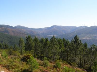 Serra da Lousã extends across 30 kilometers with steep descents on its northwest side, reaching its highest point at Alto do Trevim at 1205 meters.