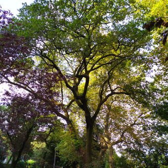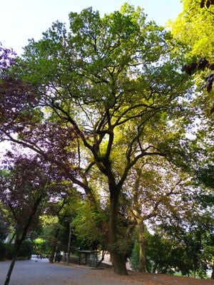 Árvore isolada em Estação do Elevador do Bom Jesus do Monte, carvalho-roble ou carvalho-alvarinho (árvore do Abraço) em Estação do Elevador do Bom Jesus do Monte