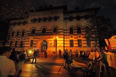 During World War II, the building served as a field hospital, and in the early communist period, students organized a protest that resulted in the auditorium burning down.