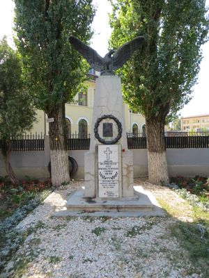 The memorial was erected in 1932 under mayor Constantin M. Brânzoi's initiative to commemorate local soldiers who died during World War I.