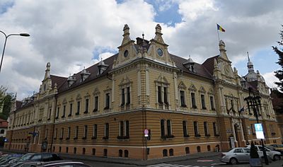 Brașov city hall is a municipal building in Romania featuring baroque revival and Art Nouveau architectural elements combined in its design. The structure rises prominently above the market square with ornate facades and a distinctive tower that commands attention from every approach.