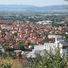 Leskovac spreads across a valley formed by the South Morava River, with Hisar Hill rising 228 meters above the city center. The urban layout mixes older residential areas, industrial buildings, and newer neighborhoods across a wide terrain.